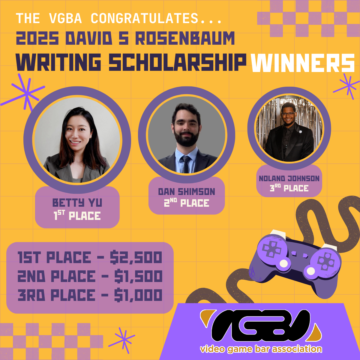 - 2nd Place: Dan Shimson, “Potential Legal Issues in the Use of AI-Generated Content in Game Development.”